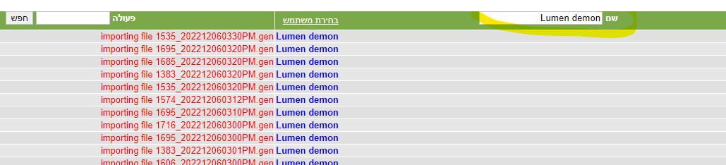 איך בודקים בקובץ הלוג הכללי העלאה של קבצי לומן – שעונים ובקרים ? 06/28/2022 22:32 אין תגובות אפרת סיריס תפריט אדמיניסטרטור > קובץ LOG במסך שמקבלים, בשם “שם” יש לרשום Lumen demon ואז אנטר מזהים את הקובץ שהועלה לפי מס חברה. אם יש משהו לא תקין, רואים את זה בלוג (למשל מגבלה של העלאת קובץ עד 3000 שורות) (נצפה סה"כ 8 פעמים. נצפה היום 1 פעמים) אודות אפרת סיריס להציג את כל הפוסטים של אפרת סיריס « הקודםהבא » השארת תגובה ביטול חייבים להתחבר כדי להגיב.