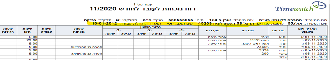 בכדי להציג בדוח נוכחות את כתובת העובד + שם האב של העובד + תאריך התחלת העבודה