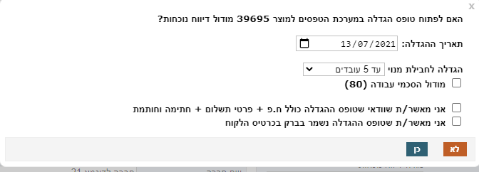 • יש להזין את תאריך ההגדלה (קבלת הטופס)
