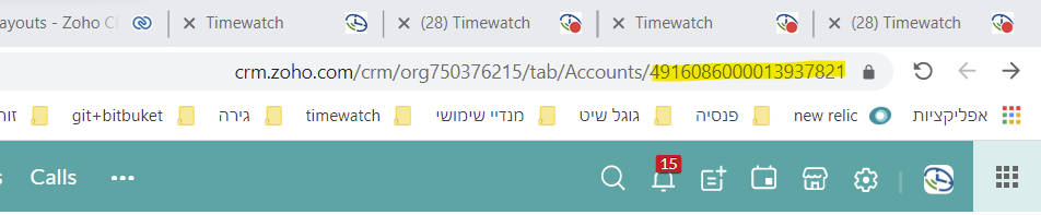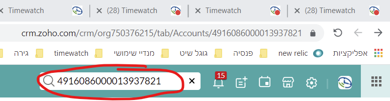 ב-CRM, כאשר נכנסים ללקוח רואים את מספר הלקוח בזוהו בכתובת ה-URL (מסומן בצהוב):