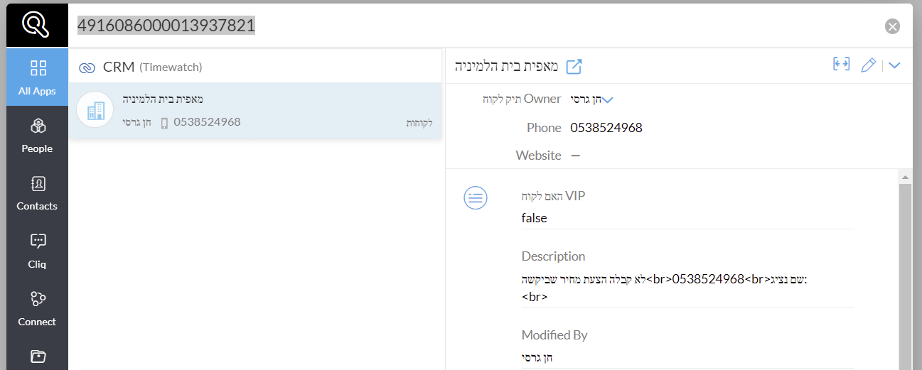 ב-CRM: רושמים את המספר בתיבת החיפוש: