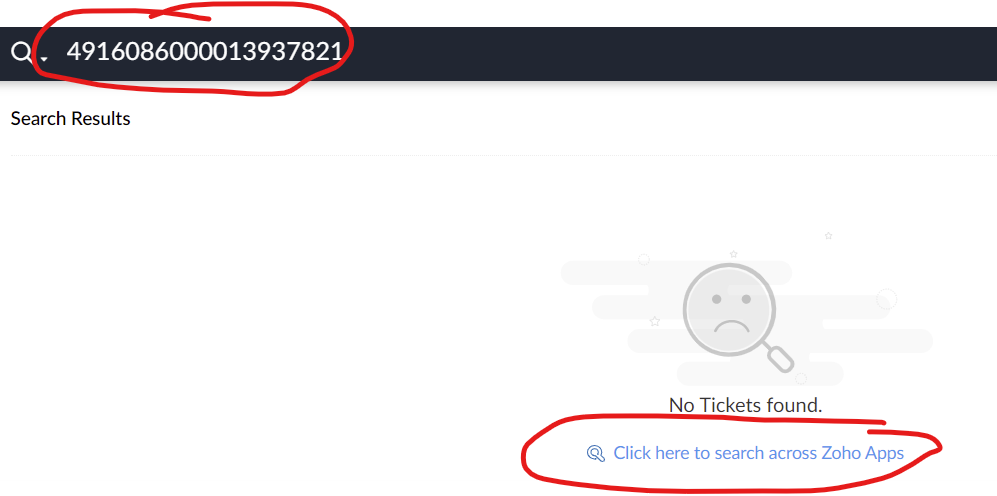 2. במסך שמקבלים לוחצים על  click here to search across Zoho Apps